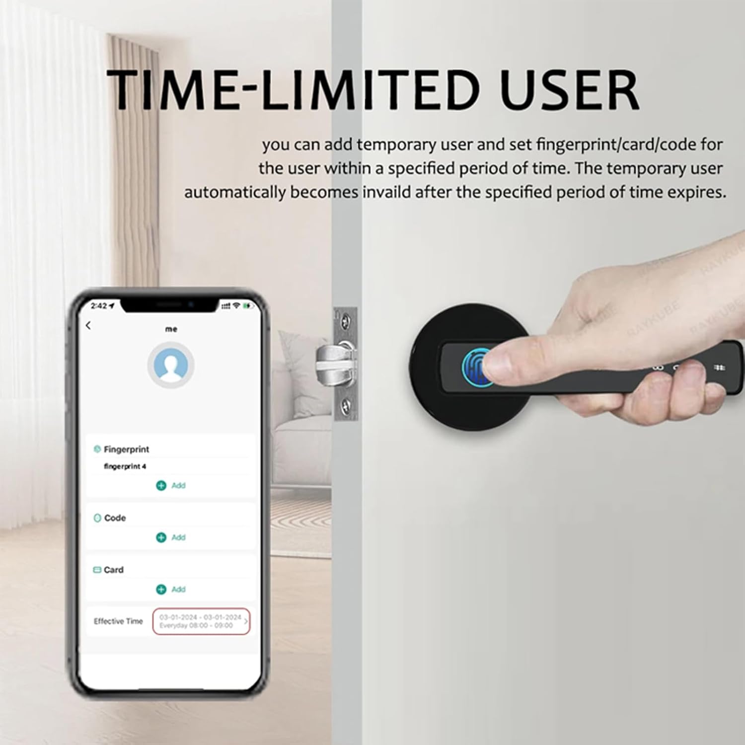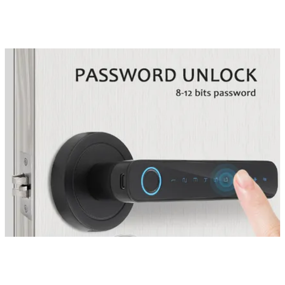 Refuerza la seguridad de tu hogar u oficina con esta cerradura inteligente de manija, compatible con las aplicaciones Tuya Smart y Smart Life.